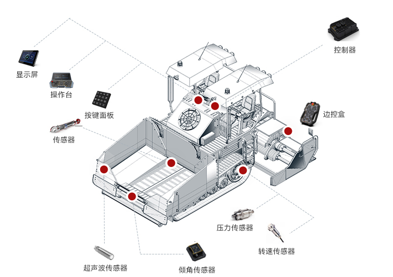 米兰电竞milan智能摊铺机解决方案整合了感知技术、自动控制系统和数据分析算法,实现了摊铺机高度智能化操作。通过实时获取路面信息和实时调整施工参数,使摊铺机操作更加精准、高效和可靠。